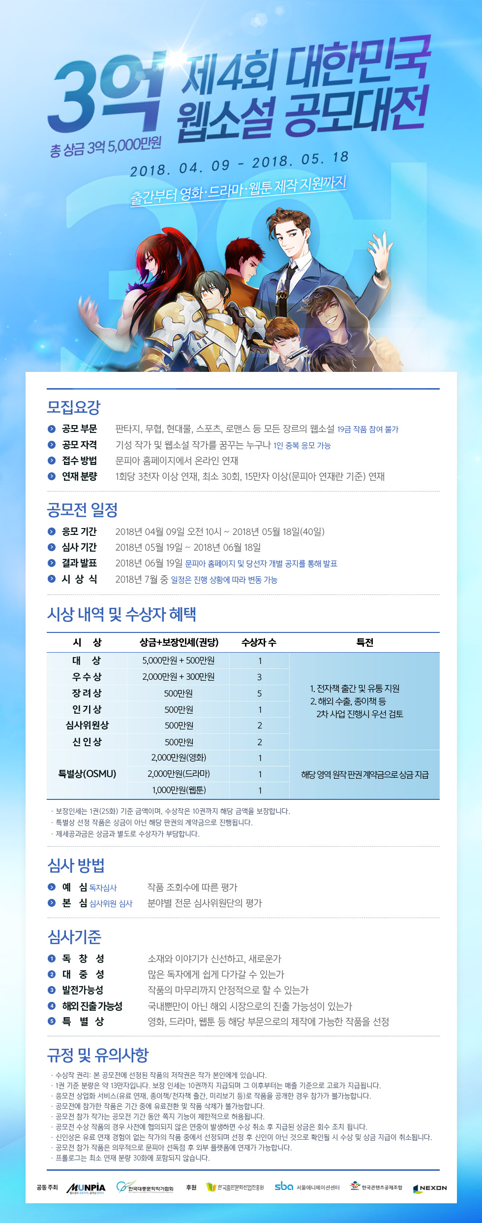 대한민국 웹소설 공모대전이라 불리는 이 공모전은 보통 문피아 내에서 진행되며, 해당 공모전에 제출되는 참가작들은 수상할 경우 문피아와 단독계약하여 유료 연재로.